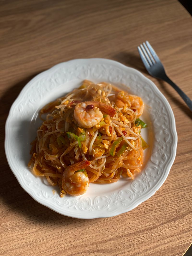 대파, 새우를 넣고 볶다가 티아시아 팟타이소스 & 면과 함께 휘리릭 볶아냈어요!