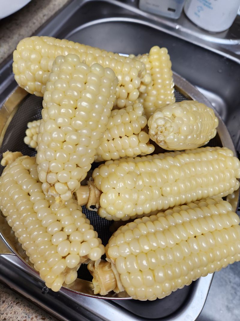 옥수수계절이 왔네요~ 알이 통통하게 달고 맛있어요^^ 압력솥에 삶아서 더 맛나나?