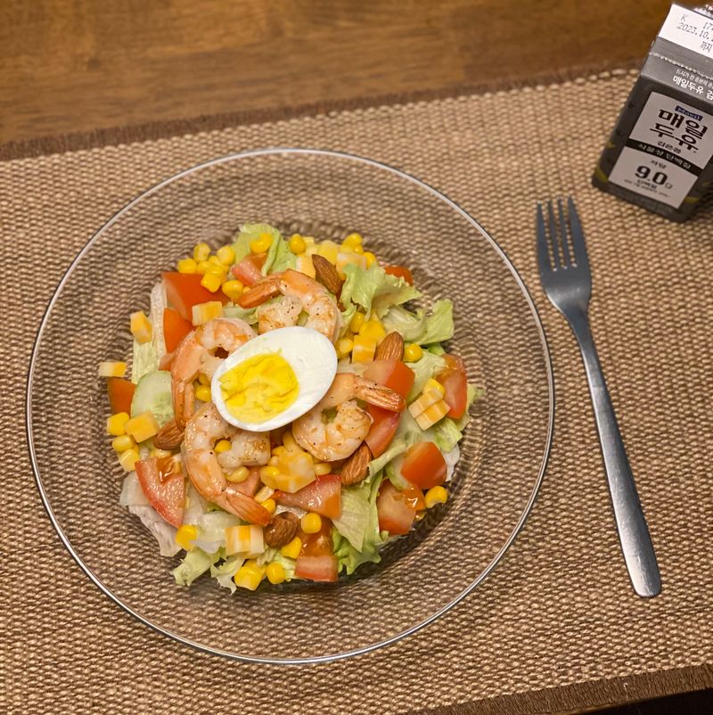 - 재료 : 양상추, 오이, 토마토, 옥수수, 치즈, 새우, 계란
