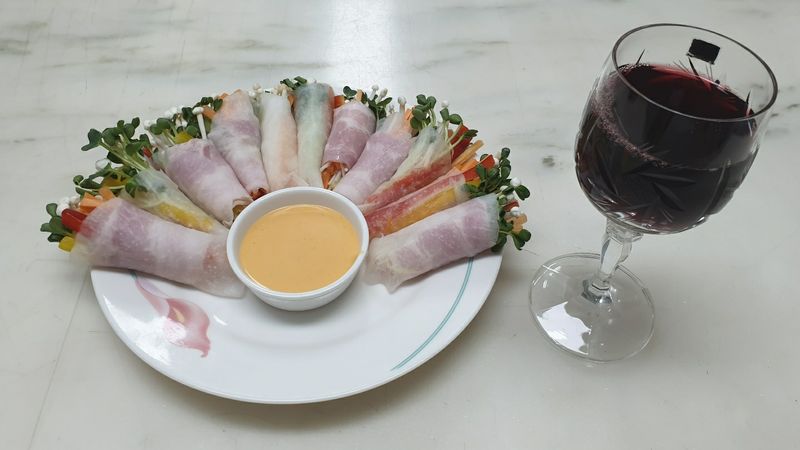 월남쌈 이쁘게 말아서 세팅. 색상이쁜 와인과 너무 잘어울려요
