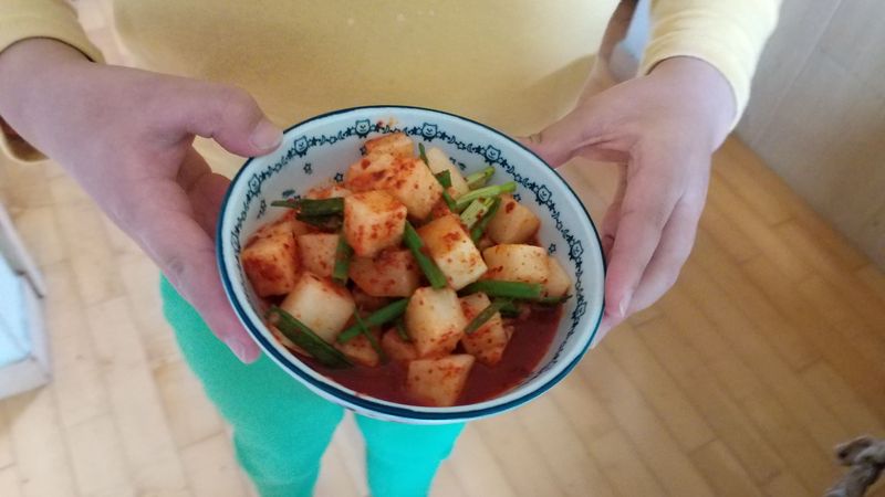 아빠랑 둘이서 깍두기 만들었어요,