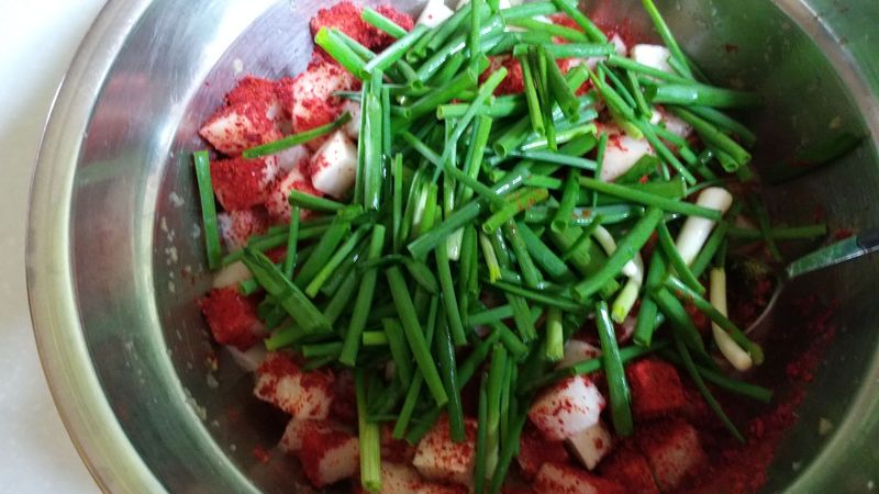 그리고 쪽파를 적당한 크기로 잘라서 넣어 섞어주면 깍두기 완성!!!