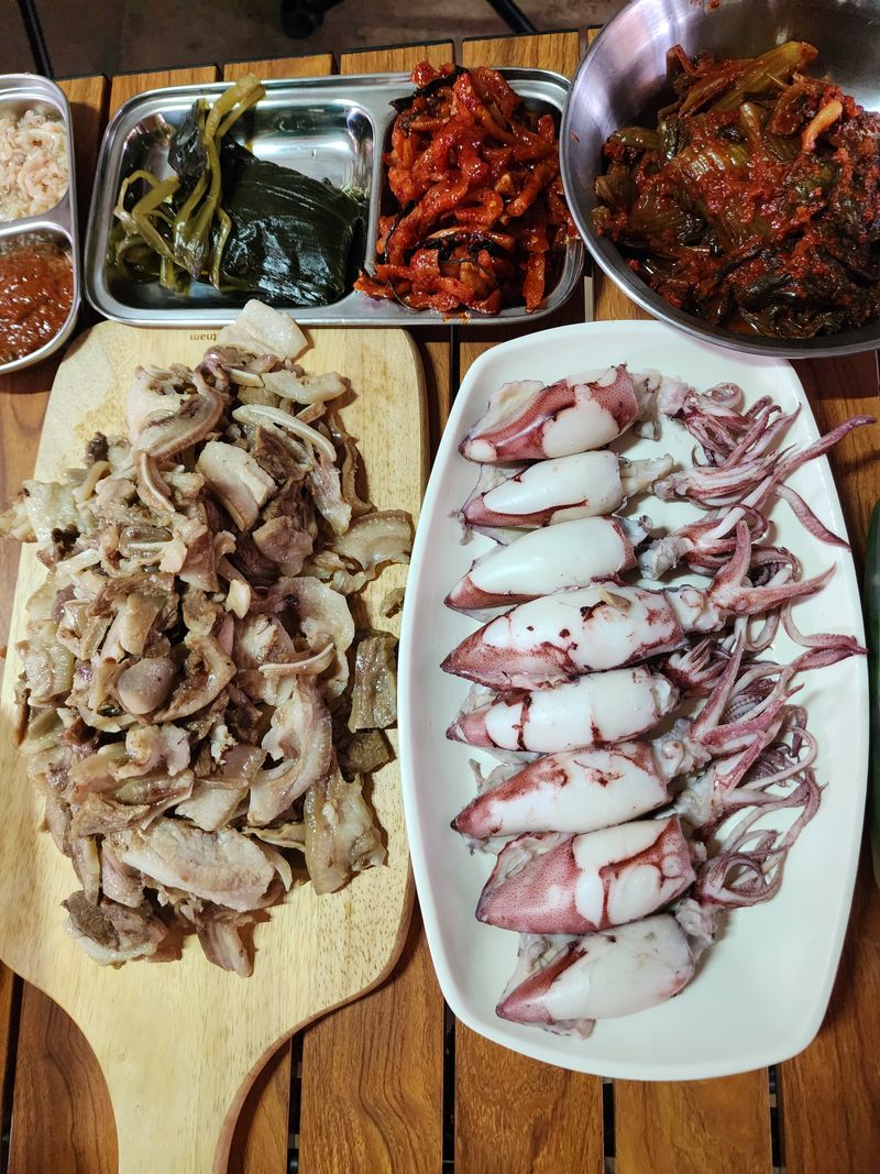 이여름에 신랑이배타고잡아온 한치로 한치통찜을했어용~찜통앞에서 저도죽는줄알았어용ㅎ 그래도 맛나게먹을생각을하니까 참을수있어용~찜통에 한치올리고수육올리고 같이 15~20분 쪄줍니다ㆍ그리고 밑반찬 제가만든 겉절이 배추에 갈치속젓에 새우젓에 파김치 모듬쌈에 미친듯이먹었습니다ㅎ 넘쉬워서 있는재료로 쓱싹 준비끝~한치잡는다고 고생한신랑 잘먹었어용♡여러분도 여름에이열치열이라고하는데 ㅋ한번쯤해보세용??캠핑장에서 오늘에요리였습니다~시원한커피가 땡기는날이였어용♡