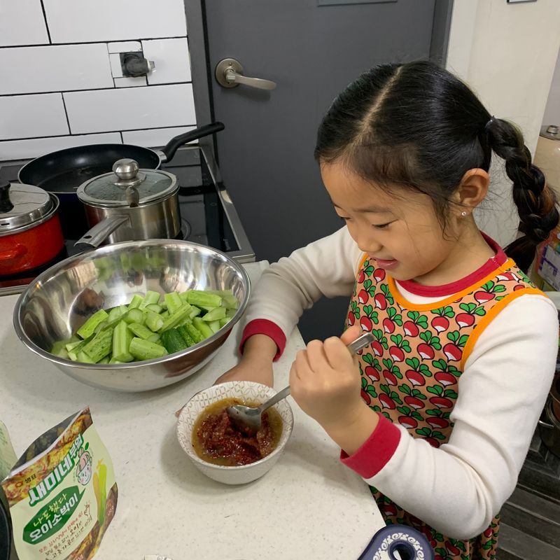 오이 소박이 양념을 다 따로 할 엄두를 못내서 잘 안해주던 김치만들기 오이 소박이 만들기를 새미네부엌양념 덕에 딸과 뚝딱 만들어 봤어요~~ 자기가 만들었다며 밥먹을때 마다 이야기 하며 가족들과 맛있게 먹었답니다~~