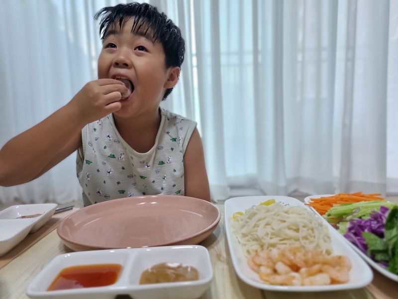어머나~ 먹는 모습이 진짜...맛이 느껴져요~ 이렇게 월남쌈하면 아이들이 야채를 잘 먹게되는 거같아요~ 굿!!