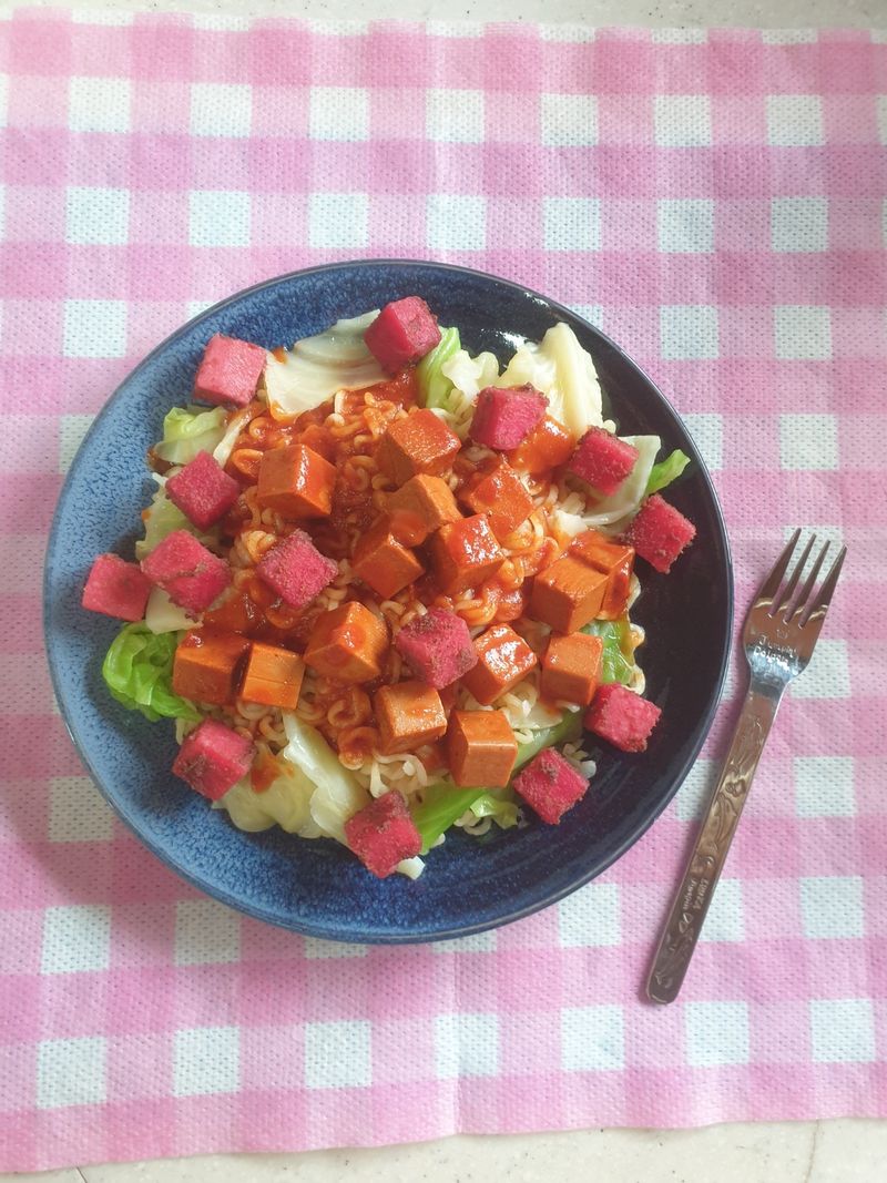 큐브참치와 냉라면과 소스 버부리면 끝. 큐브참치 활용도 많아서 좋아요. 시원하게 포만감 있게 먹을수 있어요.