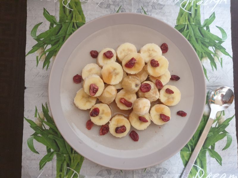 더운 여름 시원하게 냉동바나나 아이스크림 처럼 맛있게 먹을수 있어요. 바나나에 꿀 뿌리고, 크린베리로 상큼하게 !! 아이들이 좋아요. 여름 간식으로 강추