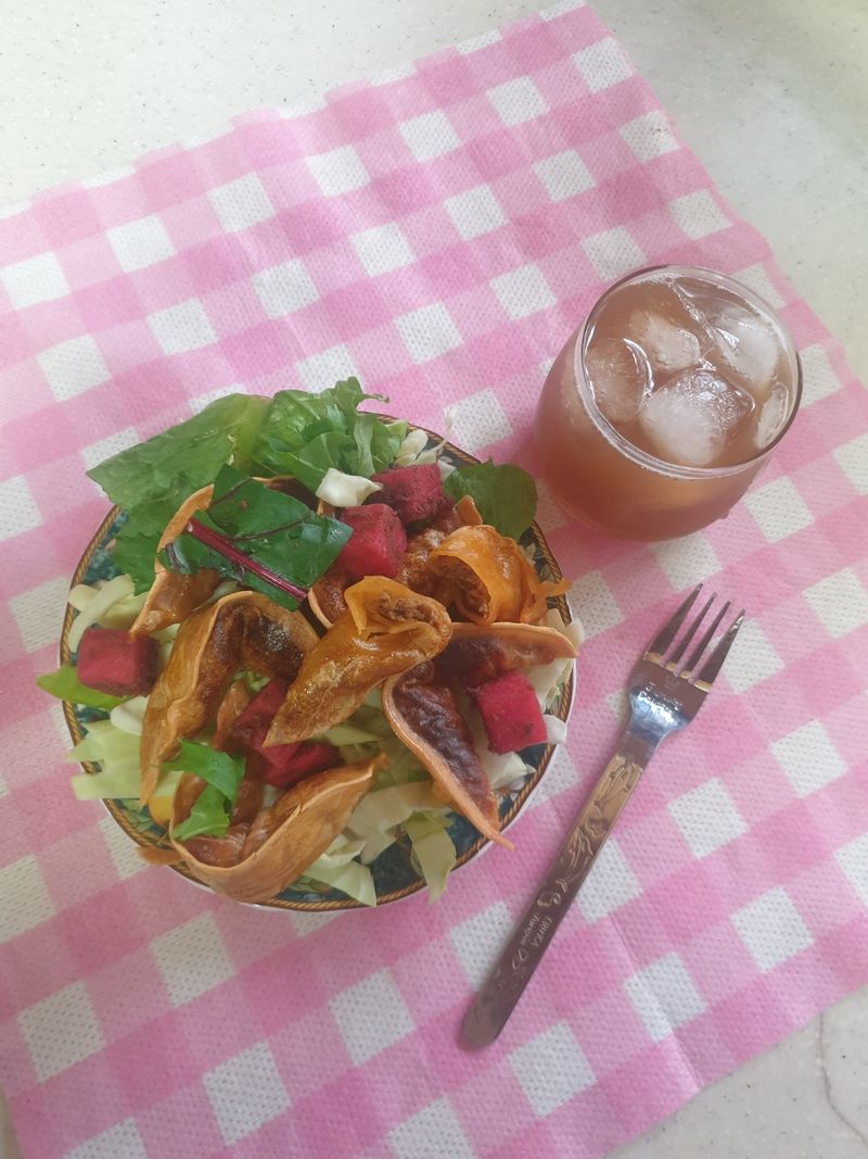 양상추또는 양배추위에 군만두 올리면 끝!! 더운 여름 이만한 간식이 없지요 땀흘릴필요없이 뚝딱 만들수 있어요