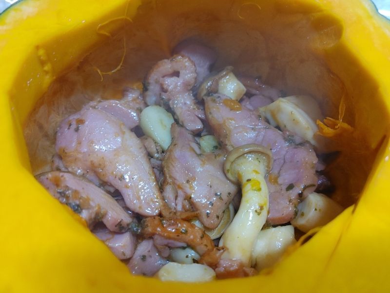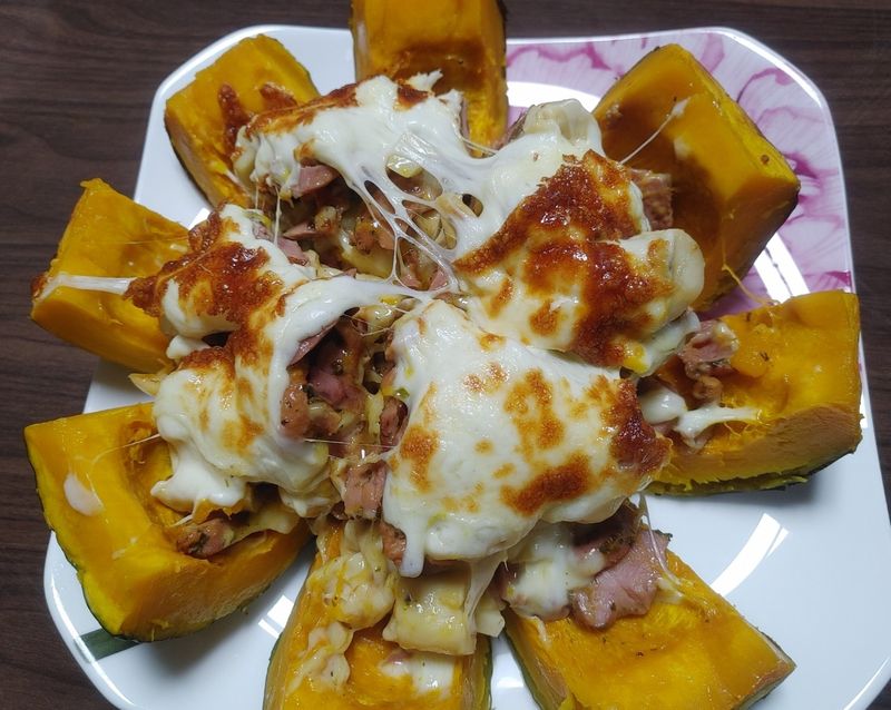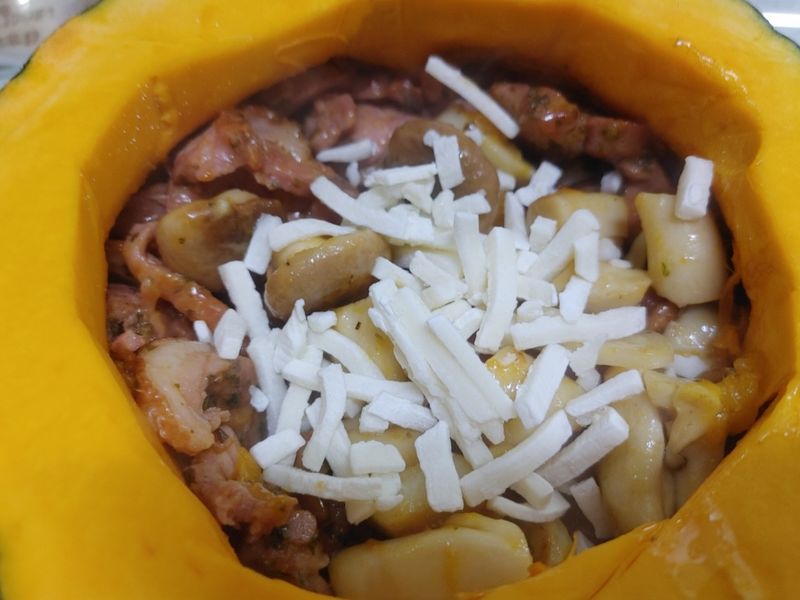 보양식 단호박과 오리의 만남.달콤한 단호박 속에 야채와 오리를 품은 끝판 몸보신 보양식이죠! 먼저 단호박을 익혀주어요 자동요리 레인지 선택 후 단호박찜 선택하면 자동으로 시간이 조절돼요 호박이 익는동안 오리와 갖은 야채를 볶아주세요!훈제오리를 볶아 기름을 먼저 빼내고 그 후 야채와 함께 볶아줍니다 간장2T,올리고당1T,후추약간,다진마늘1T 을 섞은 양념 소스를 넣어서 한번 더 볶아주세요 오븐에서 꺼낸 단호박 속을 파내고~씨를 제거해주세요 그다음 칼집을 내주세요 훈제오리와 야채를 볶은 것을 단호박 안에 채워넣어주고 모짜렐라 치즈와 파슬리로 마무리 합니다!모짜렐라치즈를 아낌없이 덮어주고 오븐 190도에서 10분간 더 익혀주면 끝! 단호박 오리 치즈가 서로 어우러지니 요리색깔도 참 고와욥!