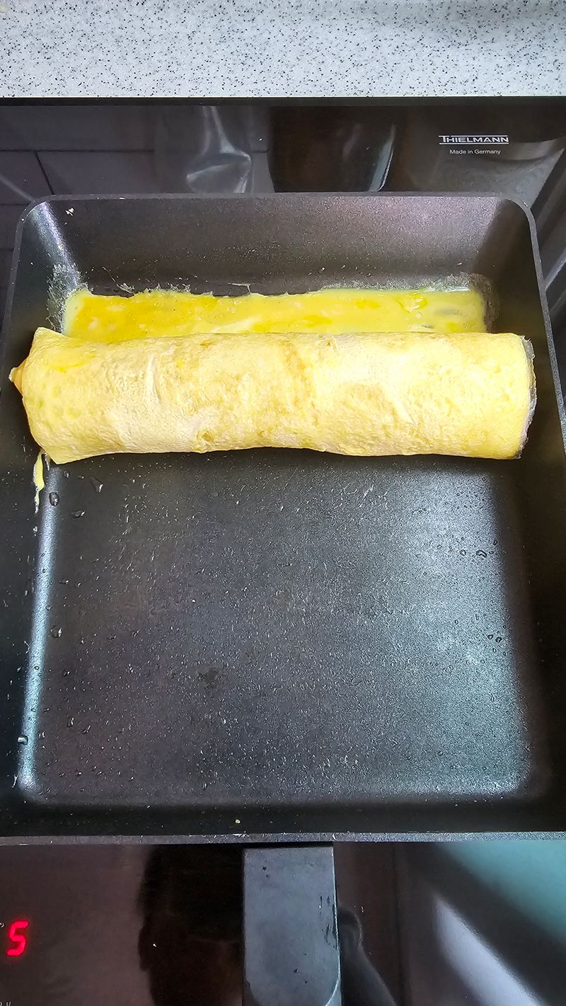 2.계란을 풀어 후라이팬에 얇게 붓고
