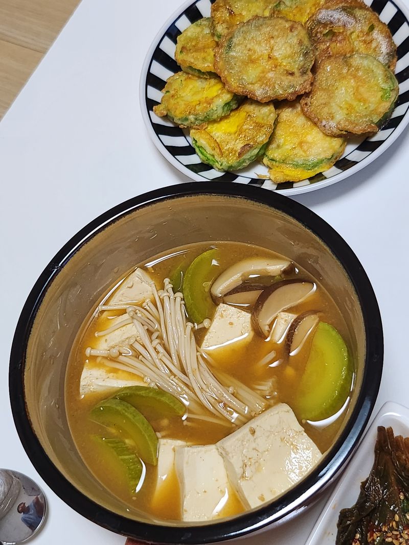 된장찌개+애호박 전~ 제가 좋아하는 한상입니다~ 부럽💕