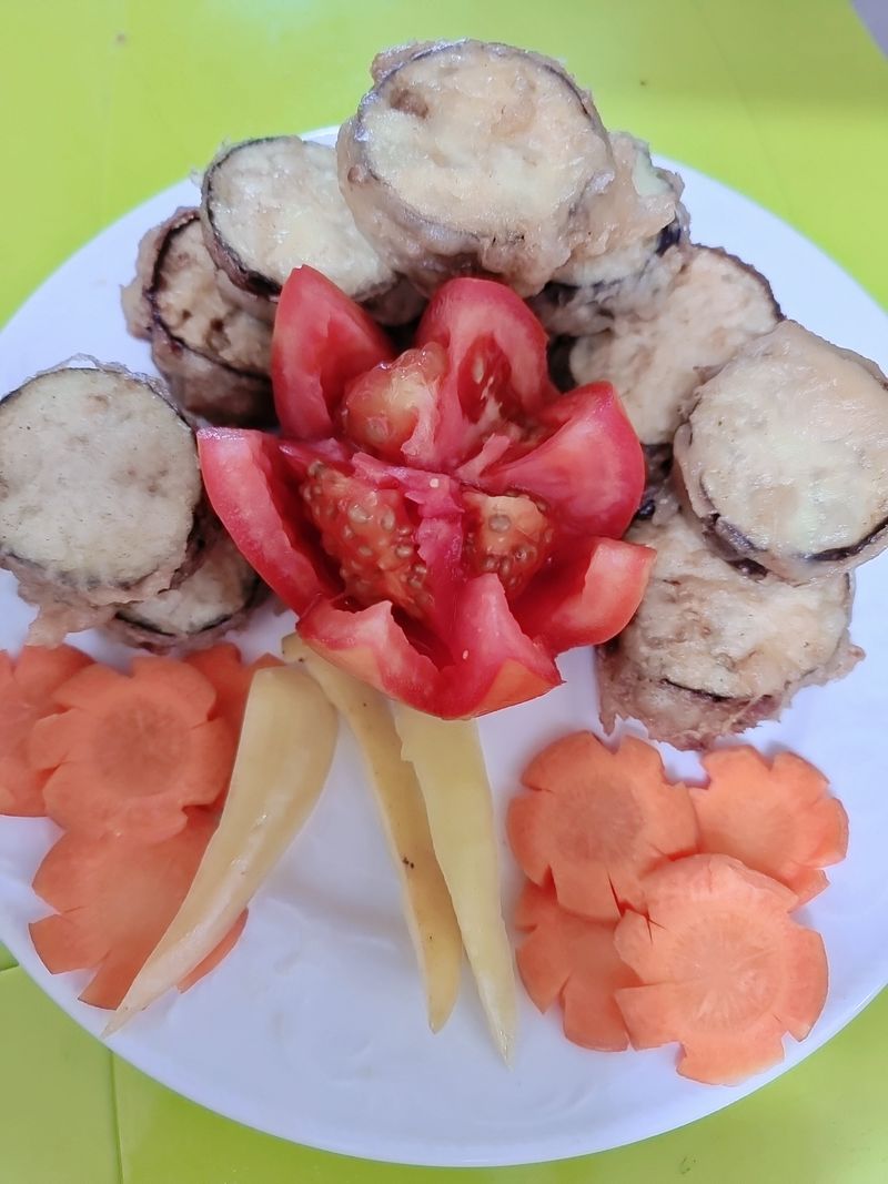 가지둥글에 썰어서 속을 가지에 튀김 가루 잎여서 튀김 면 됩니다 소스 ..간장 마늘 전분가루 굴소스 야간 두고 끌리면 소스 완성입니다
