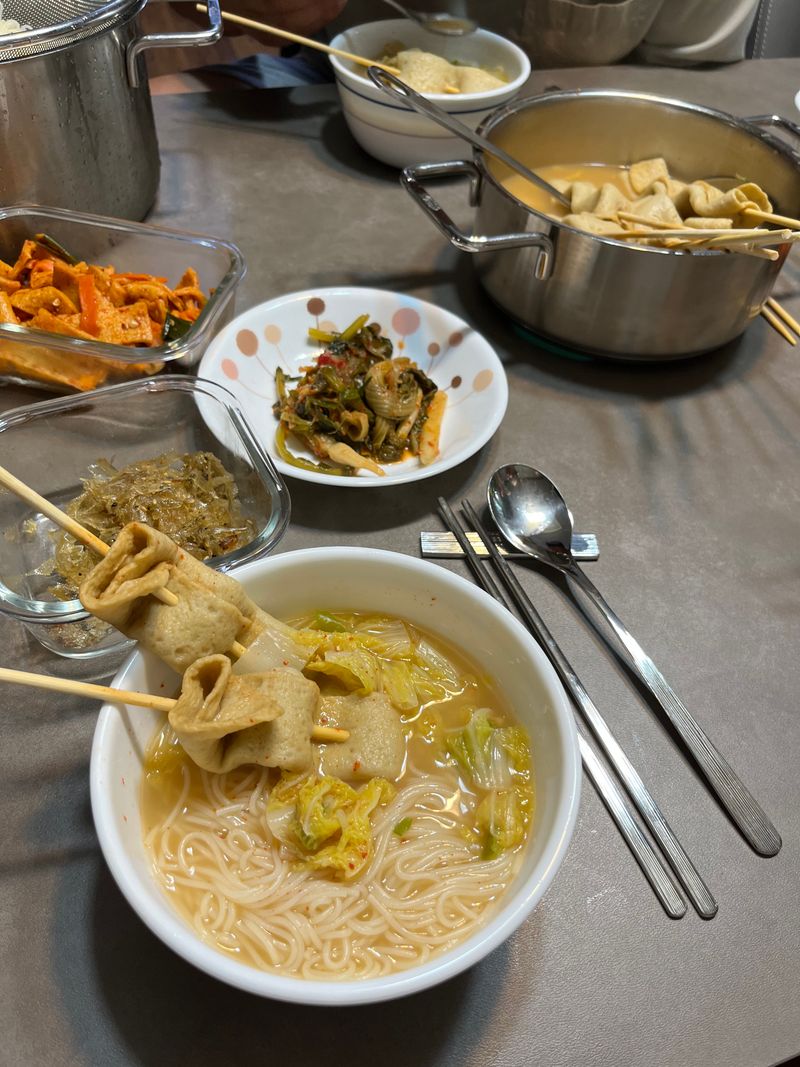 고단백소면+노브랜드어묵+금f,참기름소스+알배추 간장 소스에 달래,쪽파 김치 다진것 넣으면 좋음