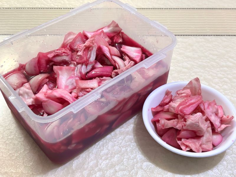 새미네 피클소스를 이용해서 양배추 피클을 만들었어요. 비트를 넣어서 예쁘게 색깔도 더했습니다/^^/