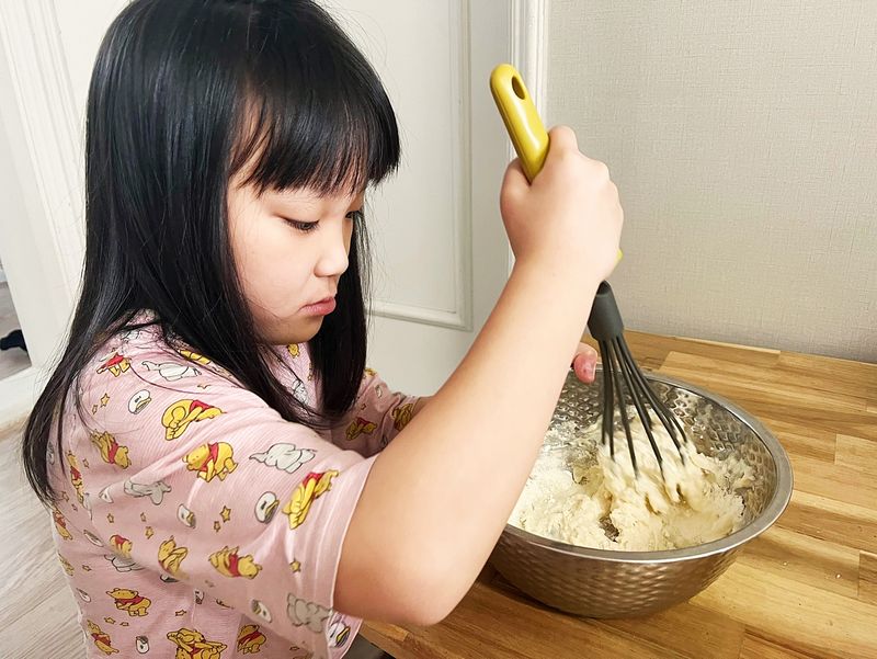 집에서 만드는 와플 생크림과 과일 준비해서 취향껏 올려 먹지요 반죽섞기는 아이 담당! 맛있게 만들어 먹어요~~