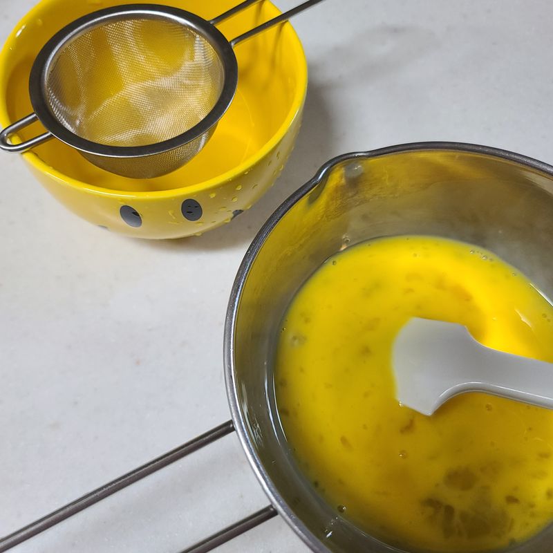 계란은 체에 걸러 곱게 내려 설탕, 소금조금, 쯔유1s