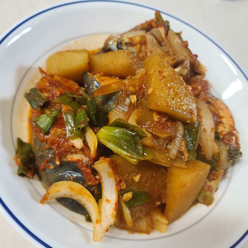 가을무 맛있을 때 고등어조림 해놓으면 딱 맛나쥬 비법은 김장김치하고 남은 다데기를 만능양념처럼 쓰는거에요~ 친정엄마는 요리가 편해진다고 김장하고 나면 늘 저도 챙겨주는데 소분해서 얼려두고 써요~ 간장,설탕, 물, 소금 가감해주면 되니 편해서 좋아요