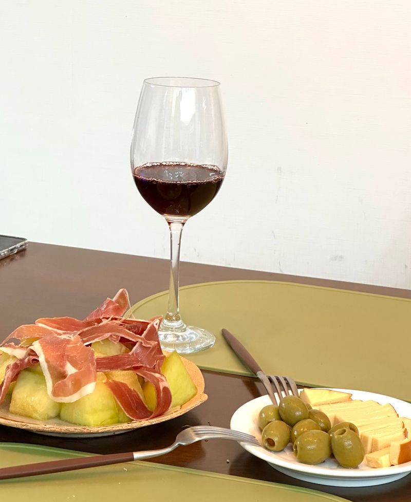 집에 친구가 놀러왔어요 조금 근사하게 차려보고싶어서 와인 안주로 하몽과 멜론으로 멜론프로슈토를 그리고 치즈와 올리브를 담아봅니다 “담는 것도 요리다! ” 그쵸? 맞죠? 😂