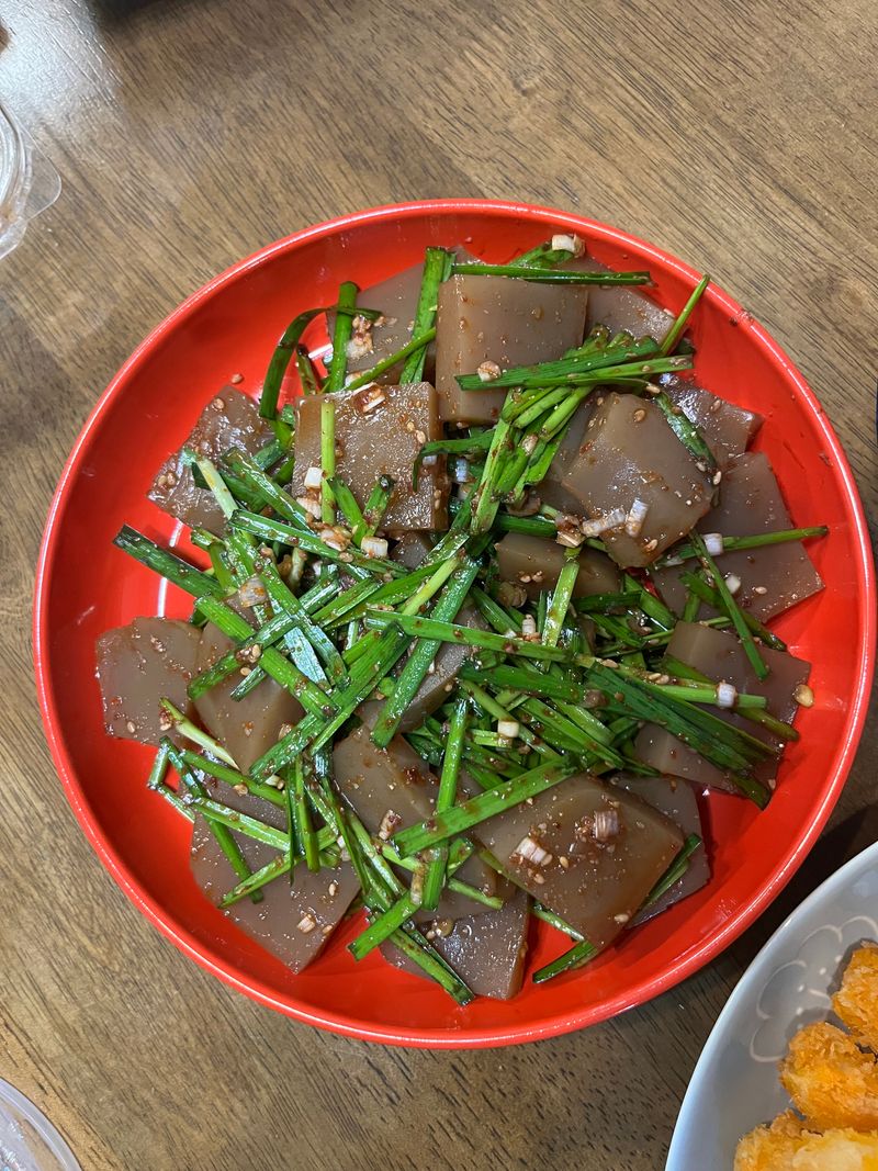 가을하면 도토리묵무침이 생각나죠~^^ 아버지가 도토리묵을 직접만들어 주셔서 일부는 썰어서 먹고, 나머지는 부추를 넣어서 도토리묵무침을 만들었어요^^ 도토리묵 반개+ 부추 약간 + 간장 +식초 + 고춧가루 + 매실청을 넣고, 마지막에 고소한 참기름 넣고 버물렸어요. 너무 맛있는 도토리묵무침 간단하게 만들어 먹었어요^^