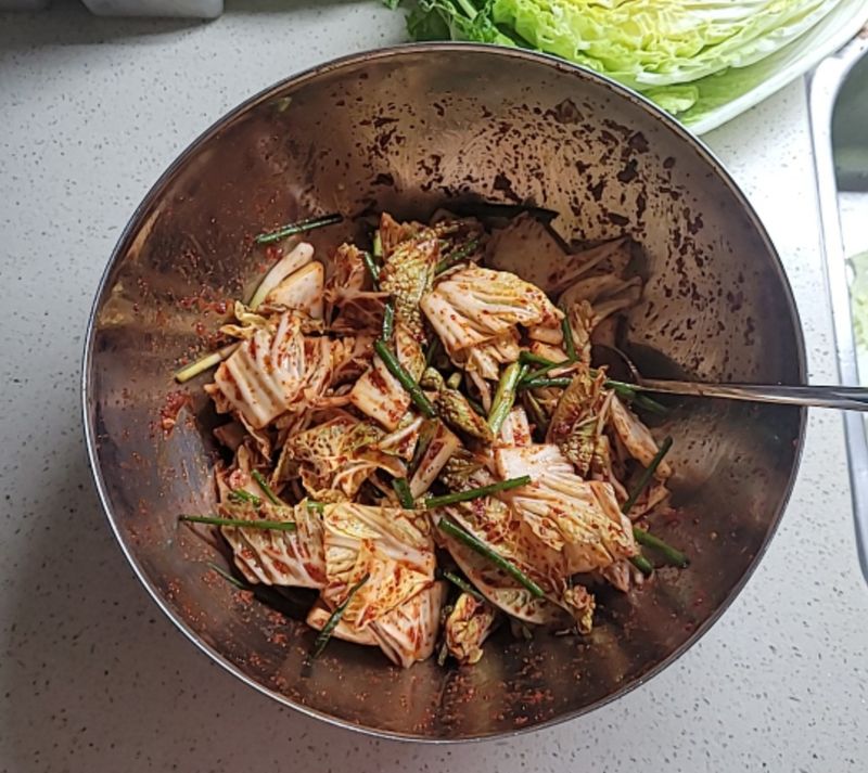 텃밭에서 수확한 배추, 무로 만든 간단 김치요리