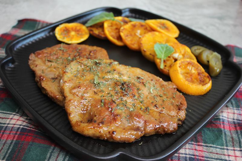 요즘 귤이 많이 나오고 맛있길래 귤소스 폭찹스테이크를 만들어봤어요! 귤소스도 만들도 설탕입힌 귤도 구워줬더니 고기랑 잘 어울리고 맛있더라고요 귤은 즙을 짜고 홀그레인 머스터드와 진간장 넣어서 소스를 만들었는데 간단하고도 맛이 좋아요