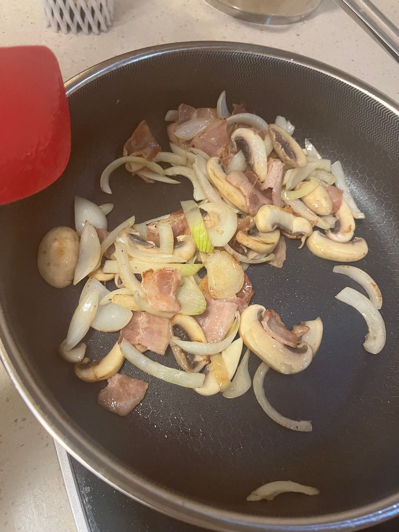 파스타면 삶기, 야채(양송이버섯+양파+베이컨) 볶고, 로제크림소스와 우유넣고 잘 볶아줍니다. 파스타면과 골고루 섞으면 맛있고 간단한 저녁식사 완성입니다~~^^
