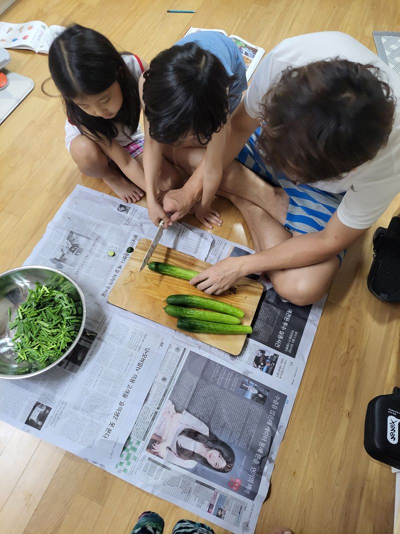 아빠랑 새미네부엌 이용해서 오이소박이 겉절이도 만들고 호떡만들기도 했지요.