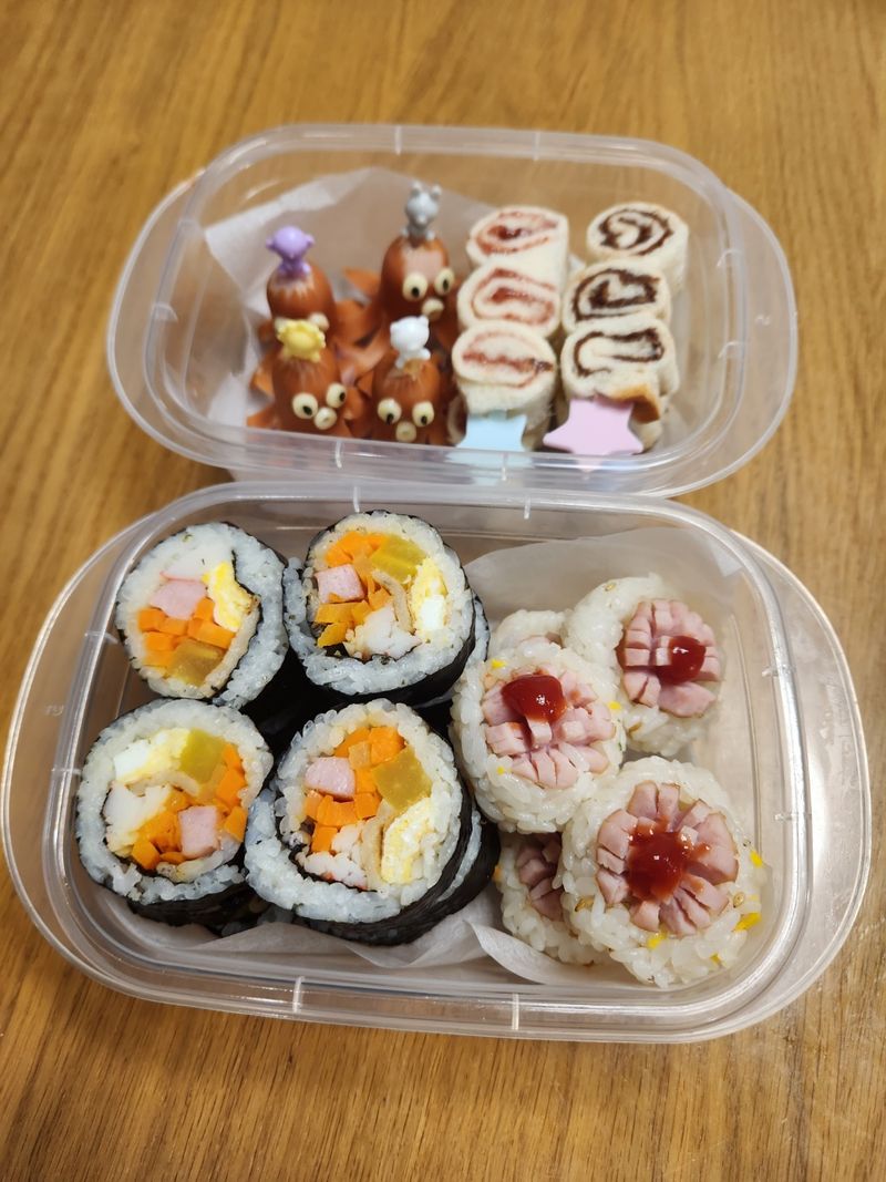 엄마의 작은 정성으로도 아이들은 하루종일 행복해지고 기억에 많이 남는 것 같아요^^ 우리 가족들의 미소가 제가 요리를 하는 이유인 것 같아요♡ 문어소세지와 꽃주먹밥은 저희 아이들이 좋아하는 반찬이랍니다!