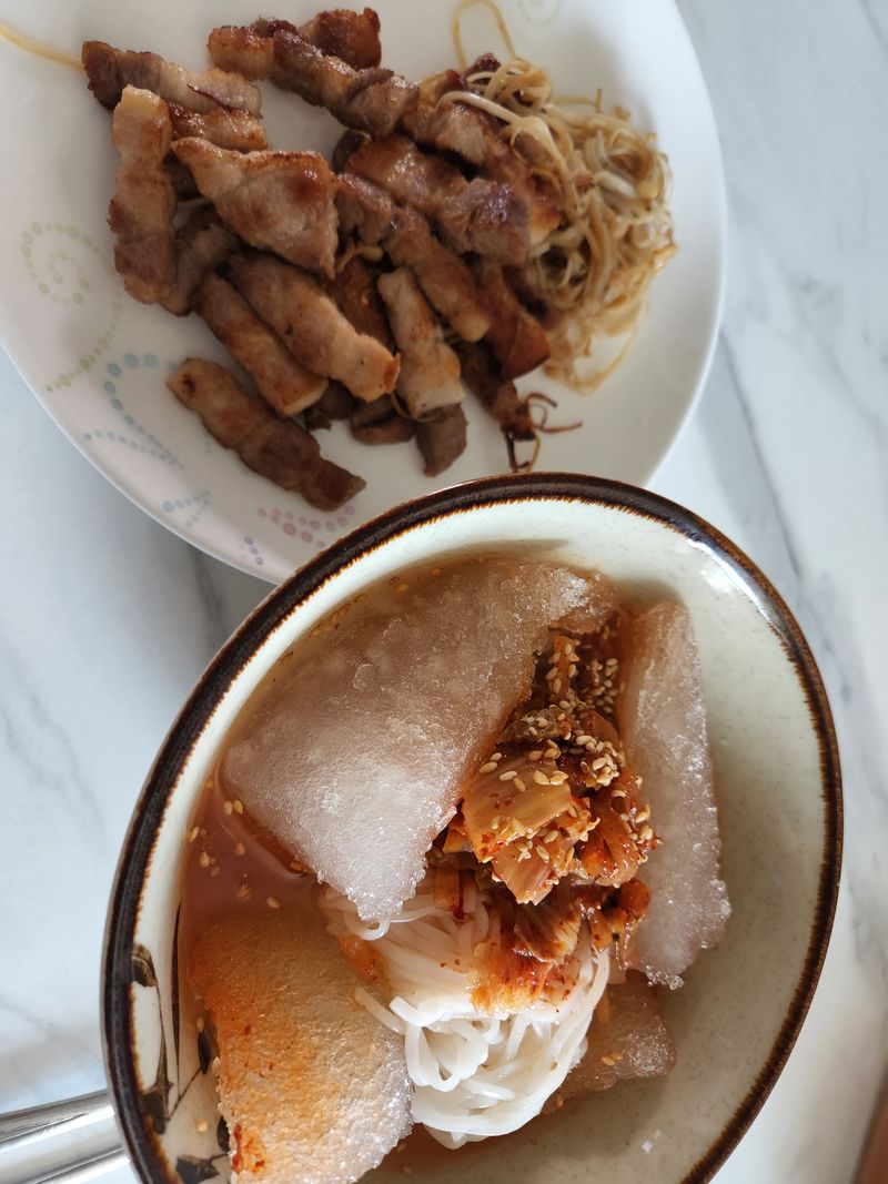 너무 맛있어서 고기 미뤄두고 쌀소면부터 흡입했어요. 뿔지않아 끝까지 탱글탱글하게 맛있게 먹었네요. 아이들 비빔국수도 쌀소면으로 준비해야겠어요.