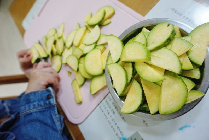 막내는 쿠키틀로 어묵과 당근을 이쁘게 모양내어 어묵볶음을 만들었어요 첫째는 짜투리채소를 잘게 썰고 계란을 나누어 계란말이 케이크를, 둘째는 애호박자르고 볶아 애호박새우젓볶음을 만들었답니다. 일주일에 한번 아이들과 반찬만들기를 하는데 정말 즐거워해요^^