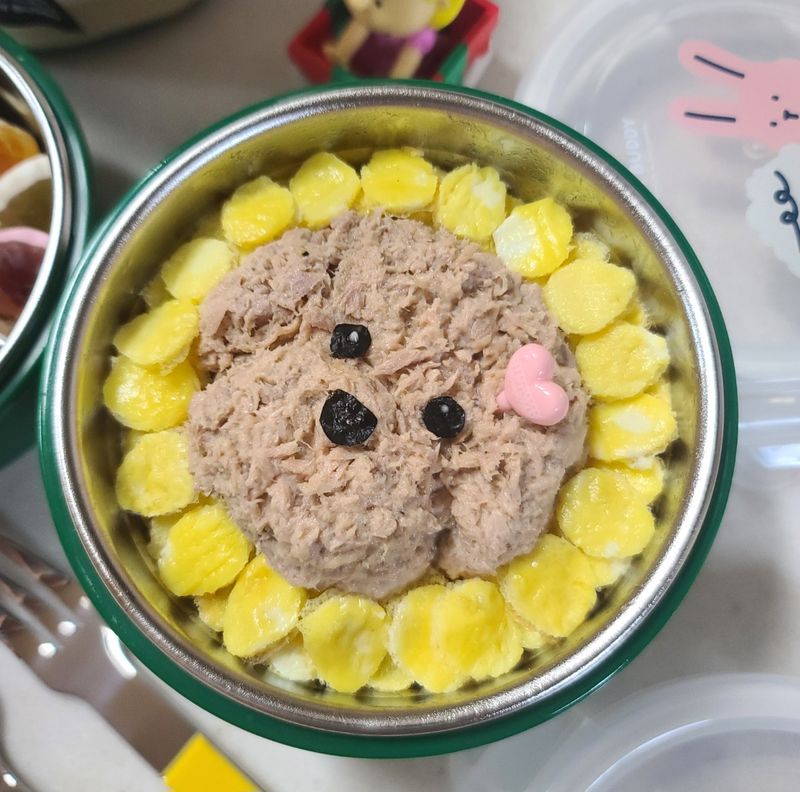 우와.... 참치로 강아지를 만드실 생각을 하셨다니... 플레이팅이 넘 귀염뽀짝해요 ㅠㅠ 최고의 아이디어입니다.+_+