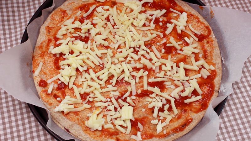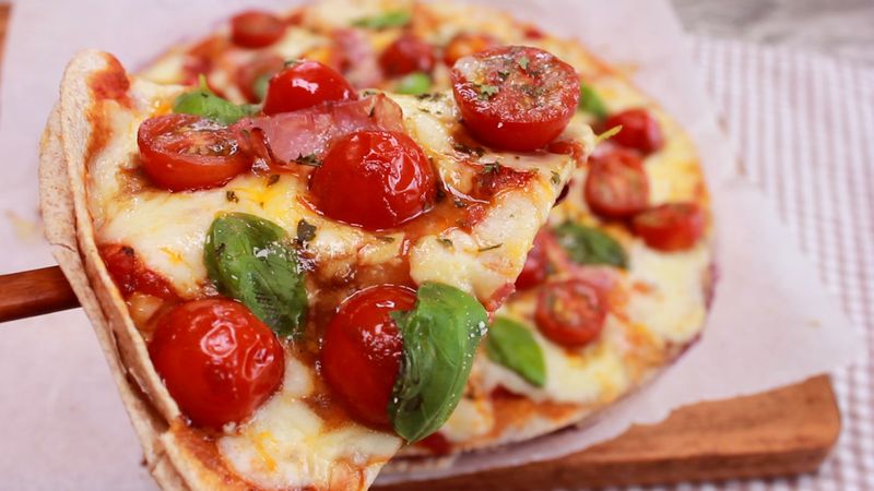 토마토소소, 모짜렐라치즈, 방울토마토, 베이컨을 올려 구워봤어요