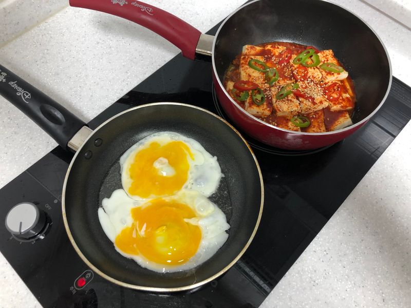 계란후라이, 인스턴트죽과 함께 먹어봤어요💗