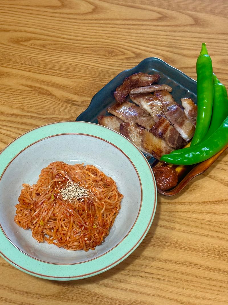 고추기름비빔면🌶️과 삼겹살구이🍖