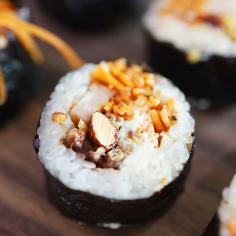 각종 견과류의 고소함과 부드러운 크림치즈, 아삭한 당근라페의 조합이 엄지척인 견과류 크림치즈 김밥