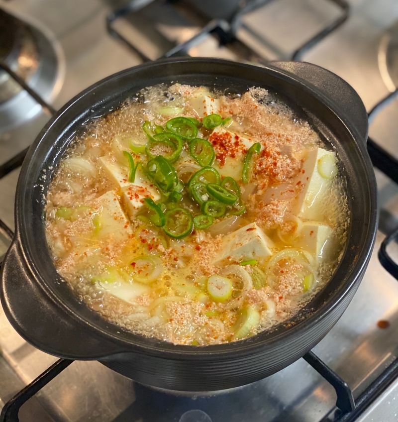 3. 고춧가루 1스푼 & 연두 1스푼 넣고,두부, 대파, 청양고추 넣고 최종 간 보기!