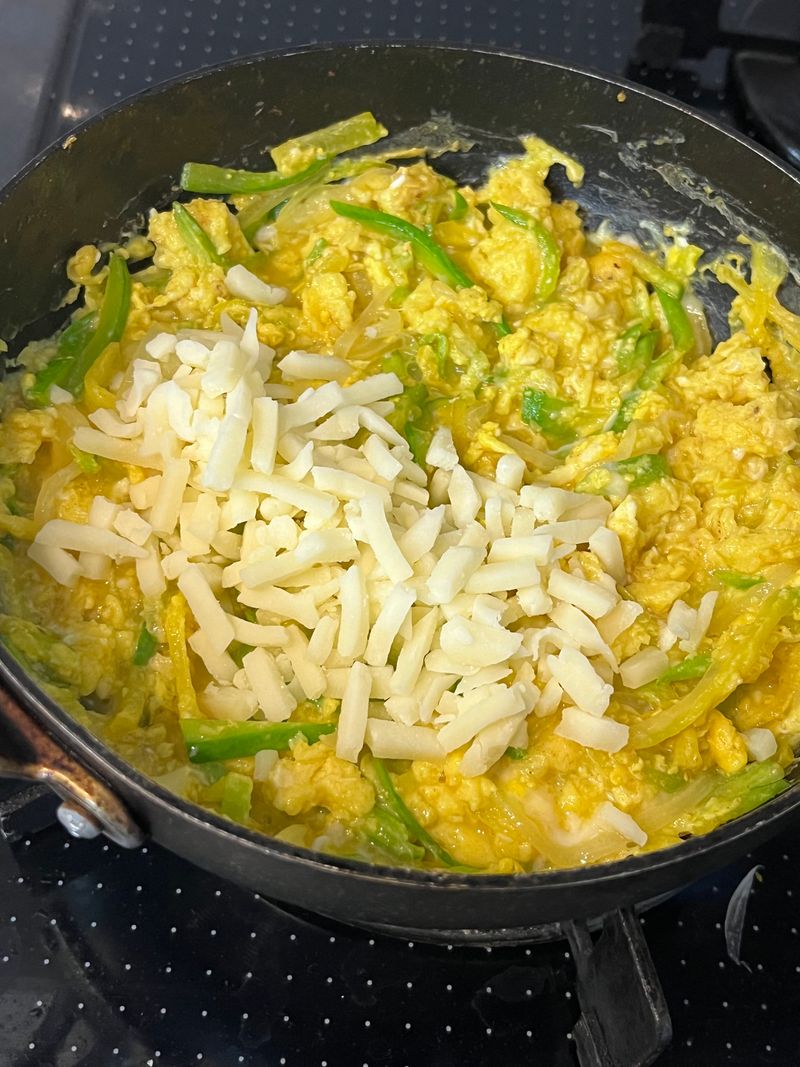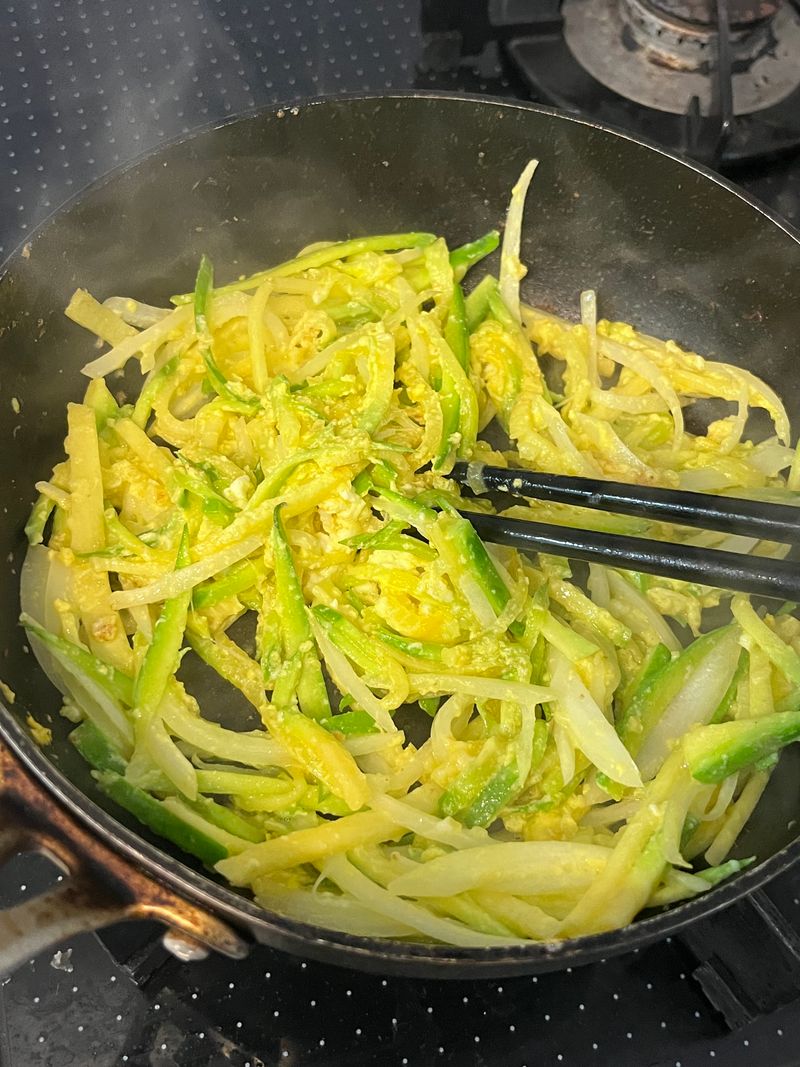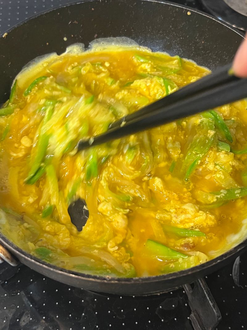 원래는 야채만 먼저 볶는건데 그때부터 약간 스크램블처럼 계란이 익어서