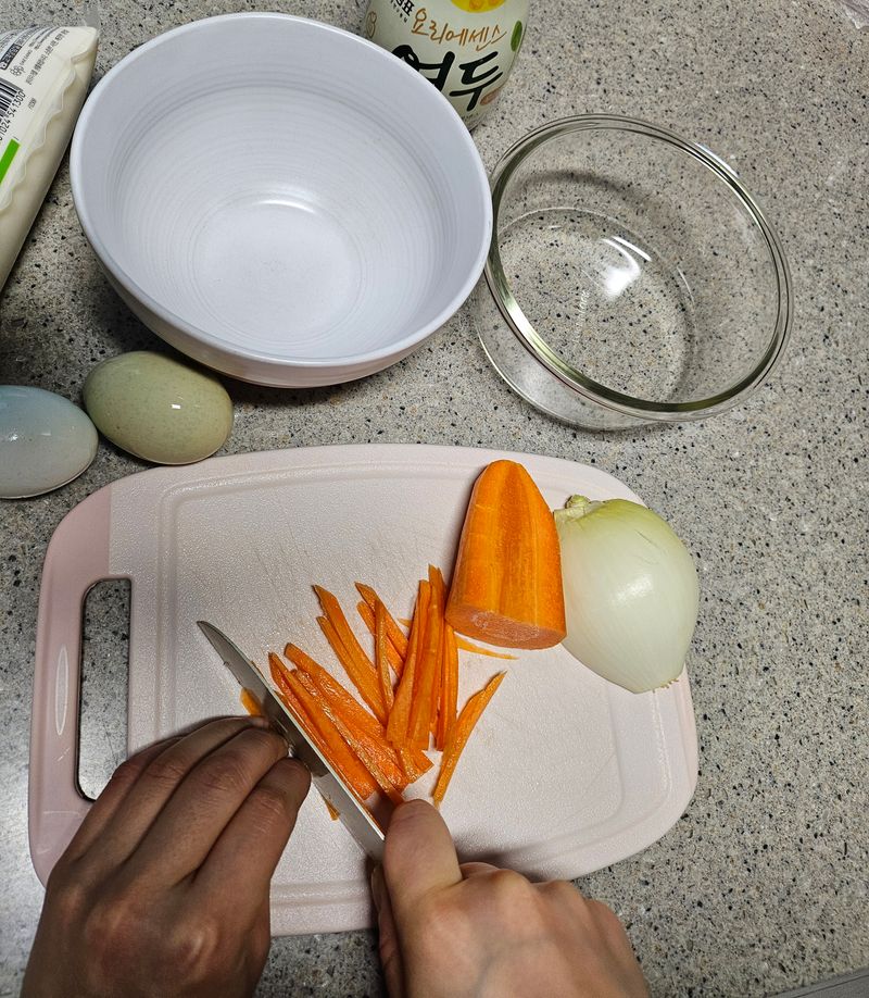 칼질을 배우고 나서인지 작게 채써는게 어렵지 않았습니다!!