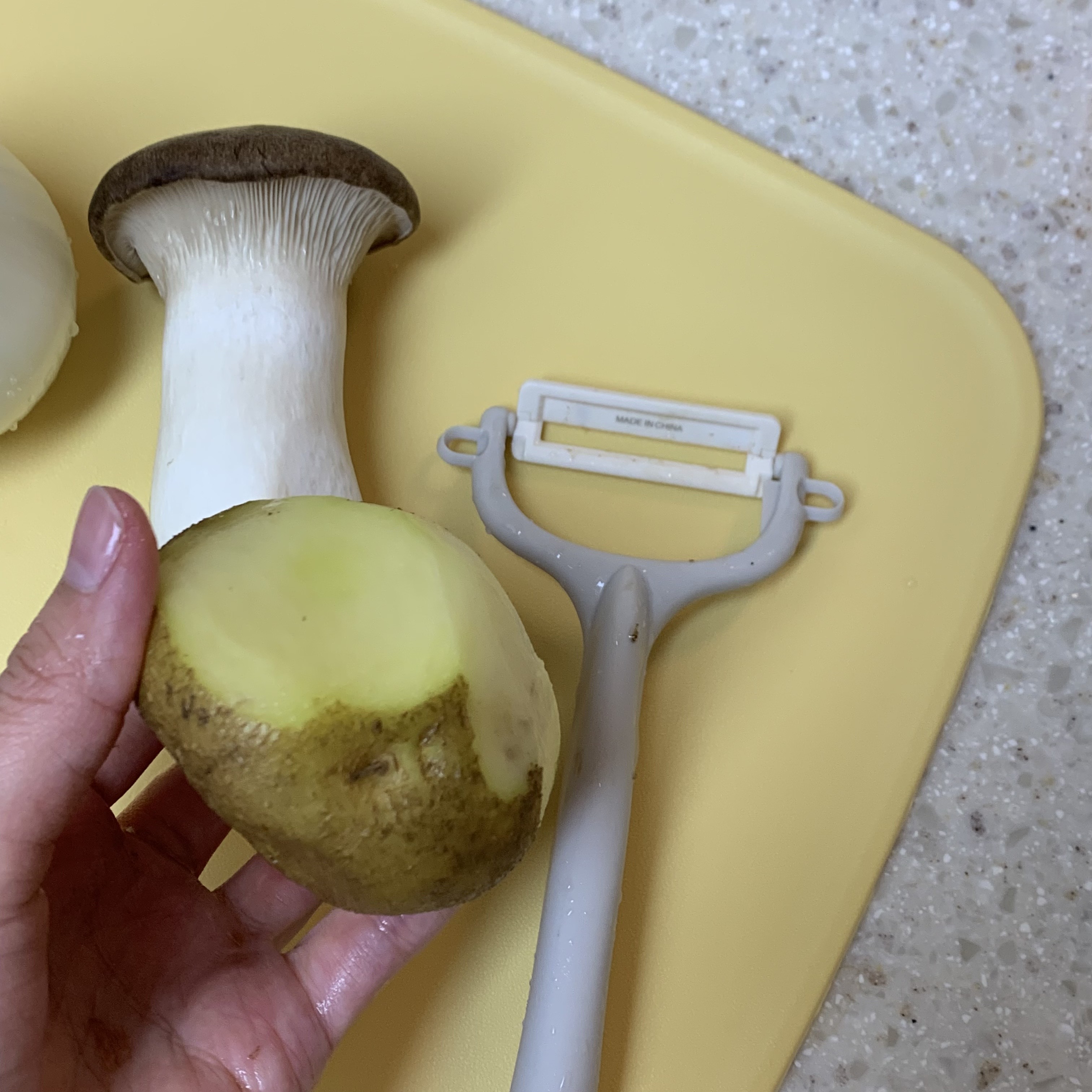우선 감자 껍질을 필러로 깎아주었는데요.. 산지 얼마 안 된 감자인데 약간 초록..? 빛이 돌려고 하는거 같아서