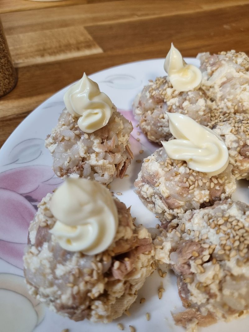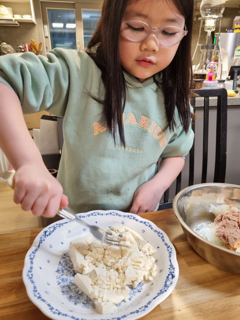 요리에 관심이 많은 아이와 함께 고소한 마요네즈에 영양가득 참치와 두부로 동글동글 참치 주먹밥을 만들어봤어요