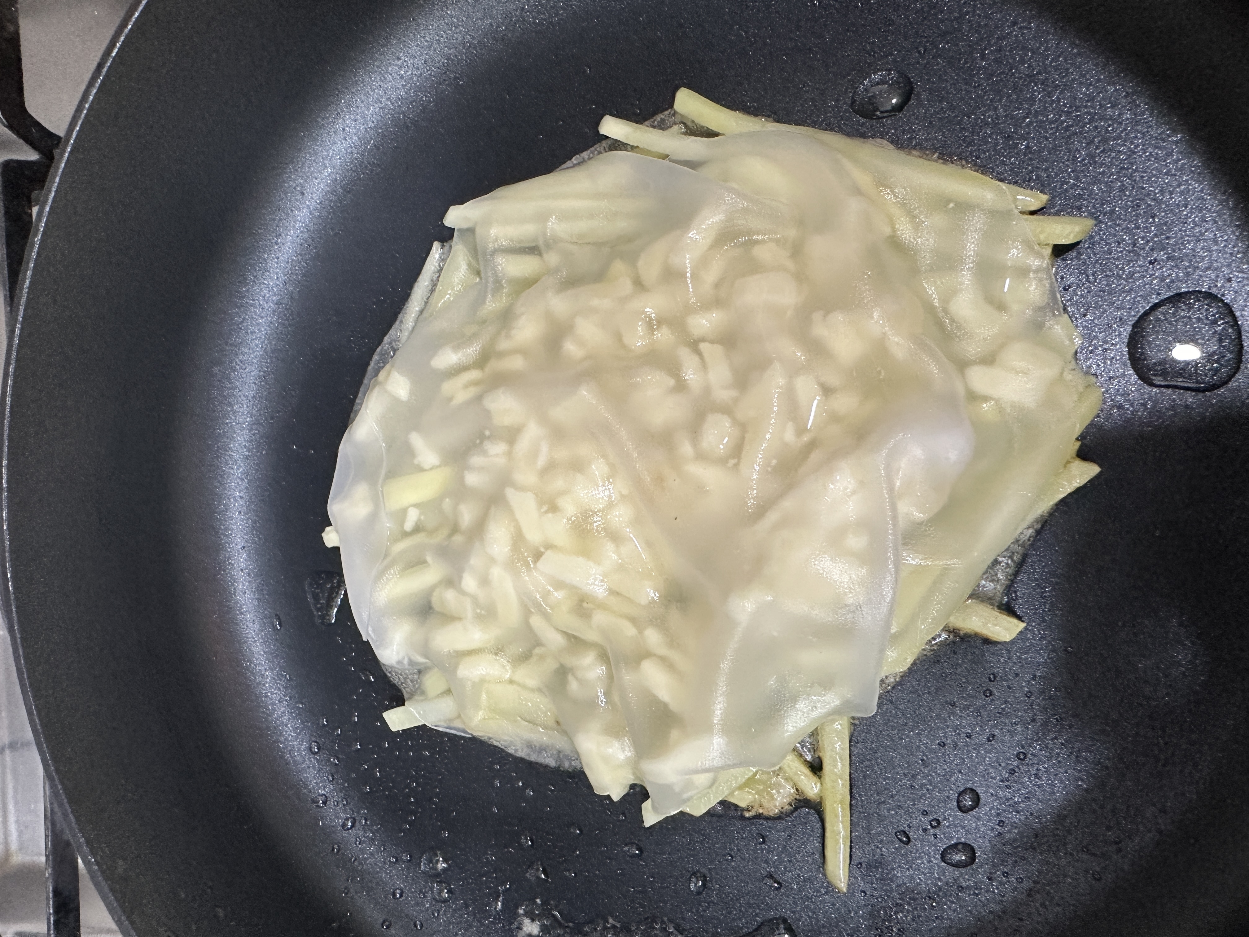 라이스페이퍼는 뜨거운 물에 적신 상태로 팬에 올리는 건가요?!?!!