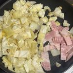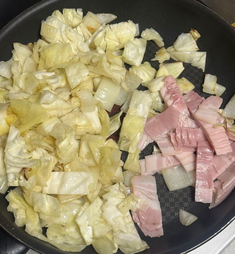 양배추 먹기 좋게 썰어 베이컨🥓과 함께 볶고,