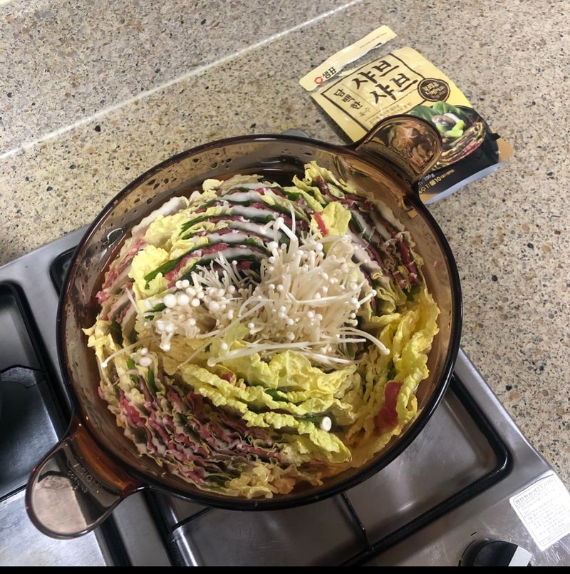 샤브샤브 육수만 있으면 맛난 밀푀유나베를 집에서 정말 손쉽게 해먹을 수 있어 좋습니다 :)