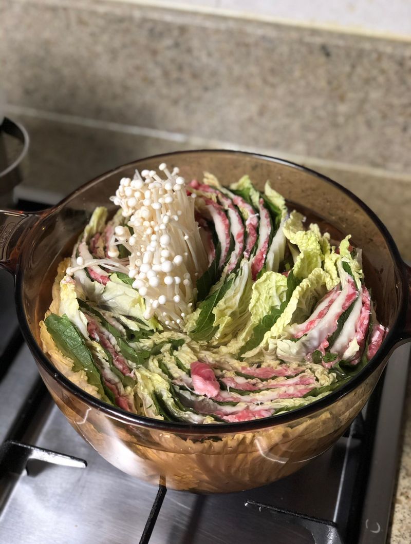 샤브샤브 육수를 사용해서 맛있는 밀푀유나베를 해드셨군요^^