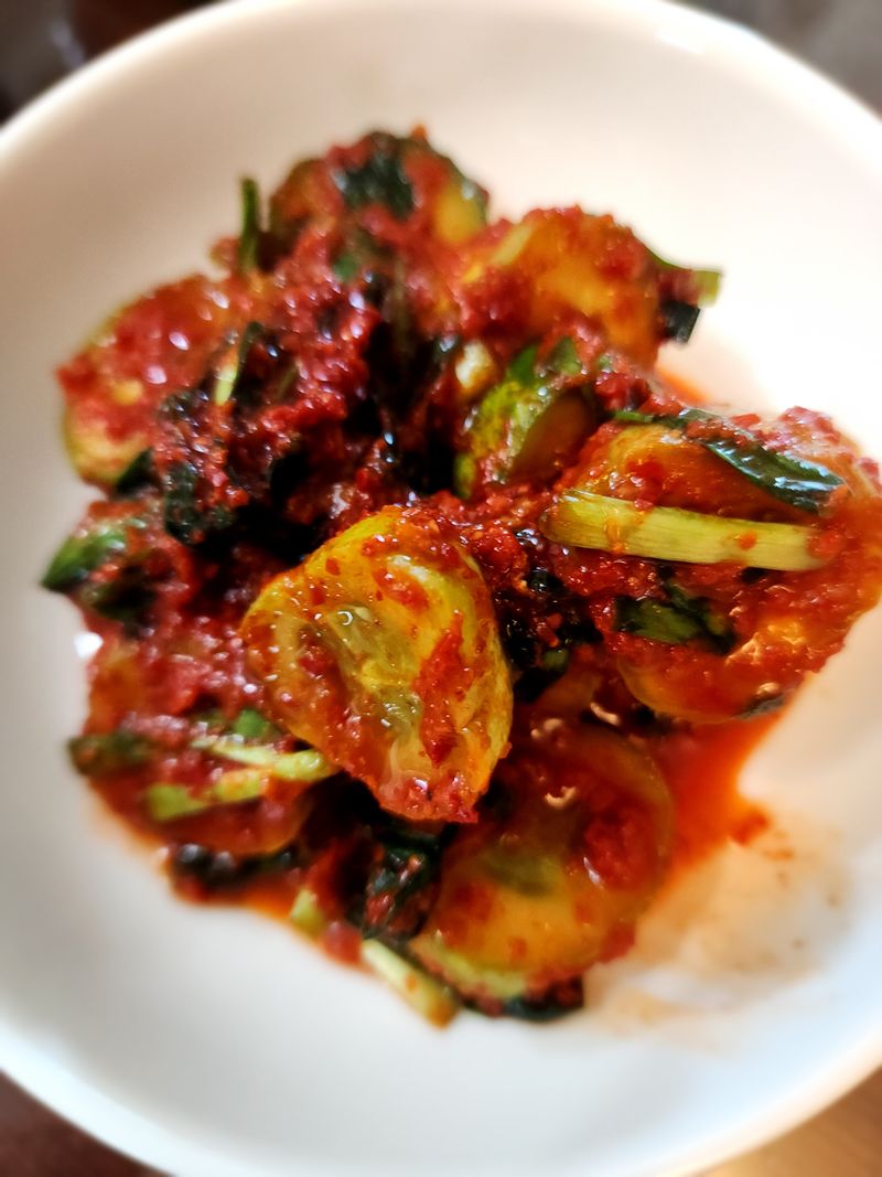 하루 숙성해서 먹으니 오이의 물이 나와 좀 더 양념이 잘 베어든거 같긴 해요~
