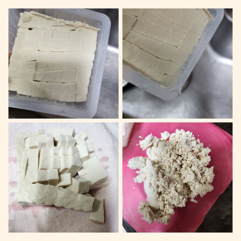 그랬더니 정말 딱 포슬포슬하게 두부의 물기가 빠져서 소보로처럼?! 완성할 수 있었답니다~~