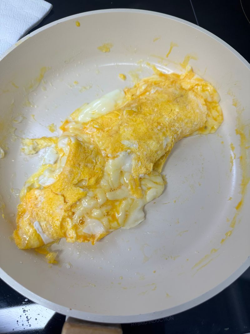최대한 치즈를 계란 안쪽에 넣어보심이..🥹
