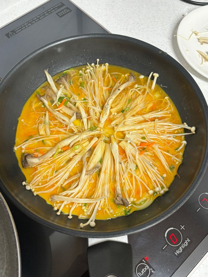 항상 밀가루가 들어간 전만 먹던 제 동생이 계란과 팽이버섯만 들어간 팽이버섯 전을 먹으니 속이 가볍고 맛있었다고 하더라고요 저도 한 입 먹고 놀랐어요 정말 감칠맛이 제대로라 맛있더라고요~ 여러분도 꼭 만들어 드셔보세요!