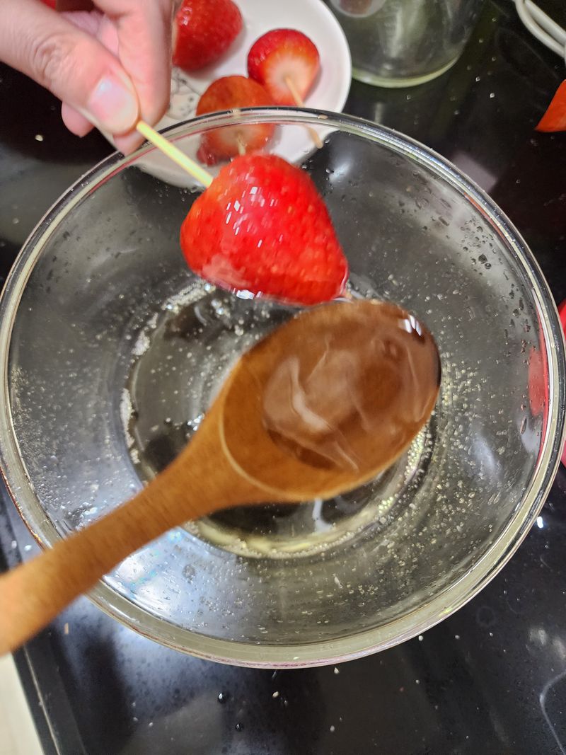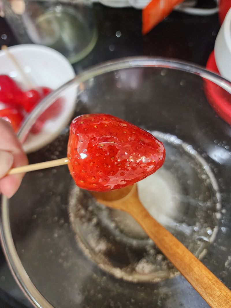 딸기 탕후루를 보더니 아이가 '엄마 딸기 꼬치 사주세요~!' 하더라구요