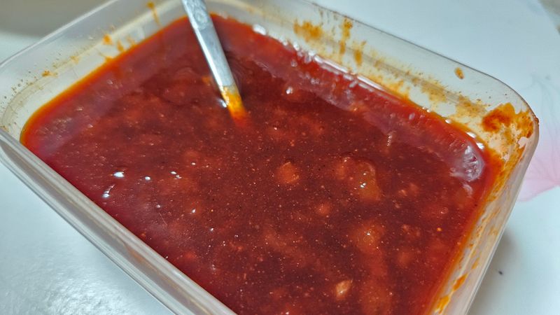 레시피 그대로 초고추장 125g 설탕 8스푼등등 을 넣고 만들었어요.